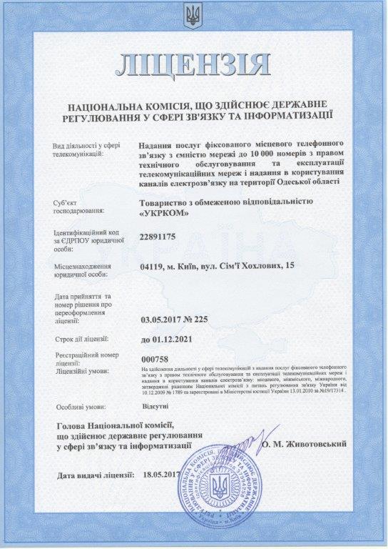 Ліцензія (реєстраційний номер 000758) від 18.05.2017р.