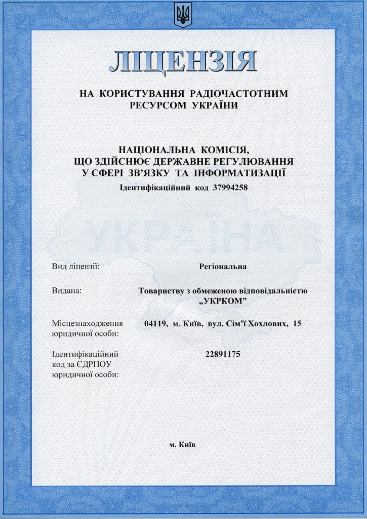 Ліцензія (реєстраційний номер 000762) від 03.05.2017р.