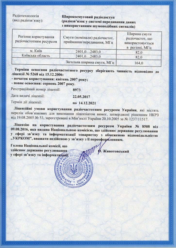 Ліцензія стор. 1 (реєстраційний номер 8973) від 22.05.2017р.