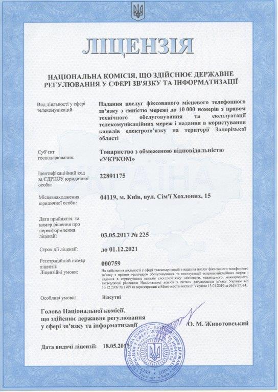 Ліцензія (реєстраційний номер 000759) від 18.05.2017р.