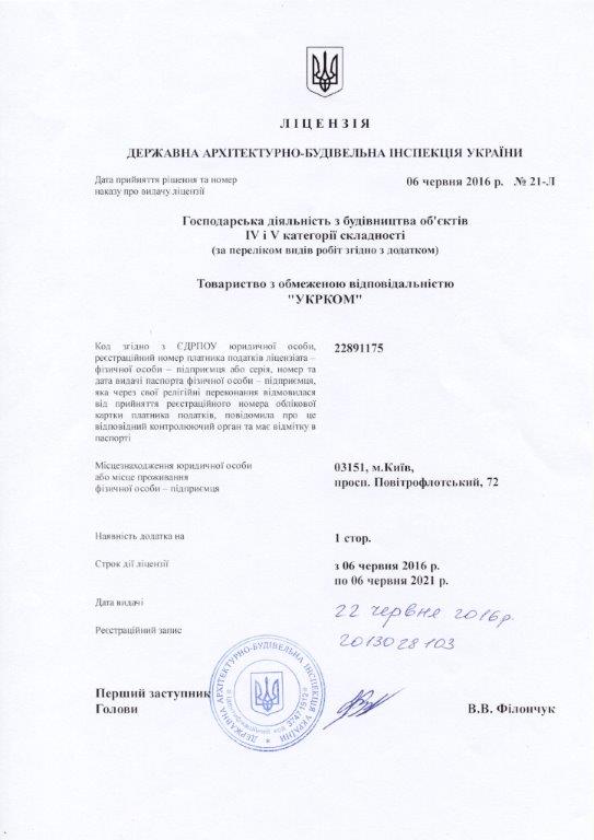 Ліцензія (реєстраційний номер 2013028103) від 22.06.2016р.