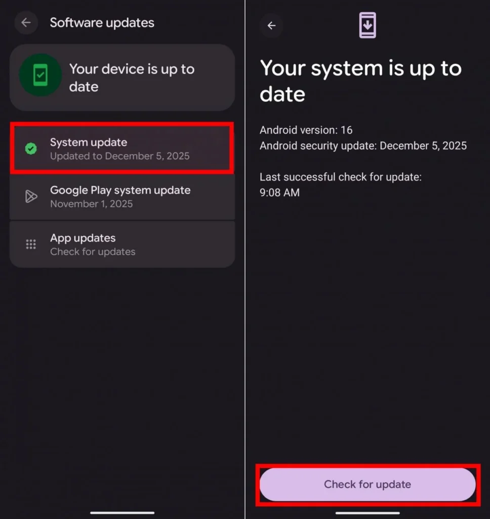 Перевірити наявність оновлення можна у налаштуваннях системи. Варто враховувати, що виробники смартфонів можуть випускати патчі з певною затримкою. Щоб бути впевненими у повному наборі виправлень, переконайтесь, що ваш пристрій отримав патч із позначкою 2025-12-05.