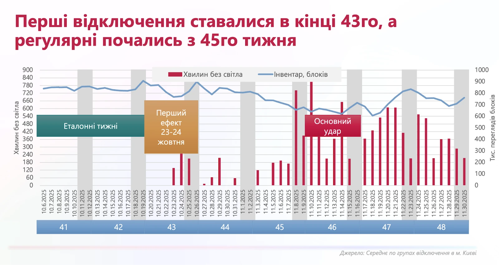- Серіальні канали утримували глядачів довше, але за тривалих відключень аудиторія теж зменшувалась. Після стабілізації постачання електроенергії глядачі швидко повернулися.