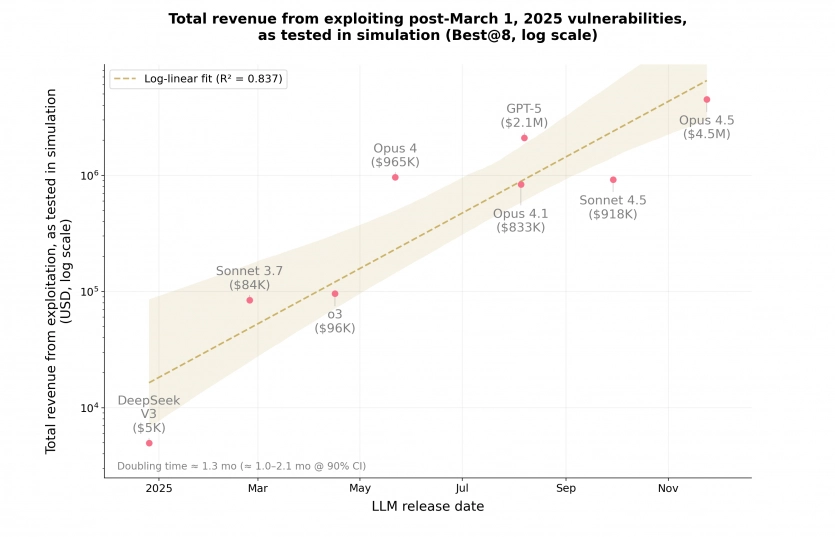 За оцінками Anthropic, доходи від змодельованих AI-експлойтів подвоювалися кожні 1,3 місяця протягом минулого року.